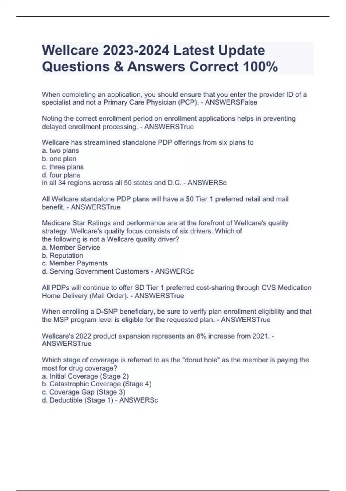 Exam 2024 Wellcare Mastery Exam Questions And Answers