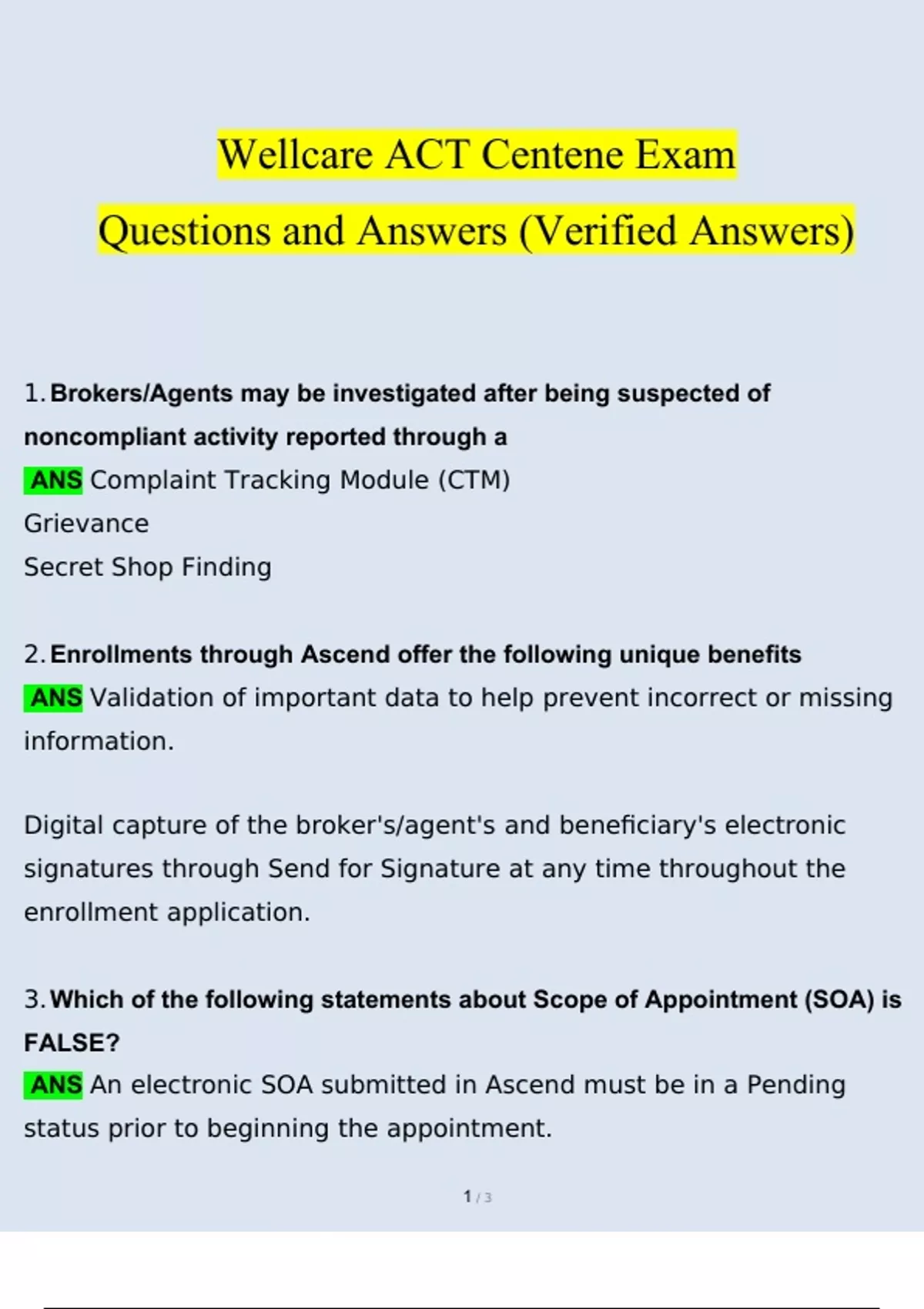 Wellcare Act Mastery Exam (Latest 2023/ 2024 Update) Version 5 | Questions And Verified Answers| Grade A| 100% Correct Q: